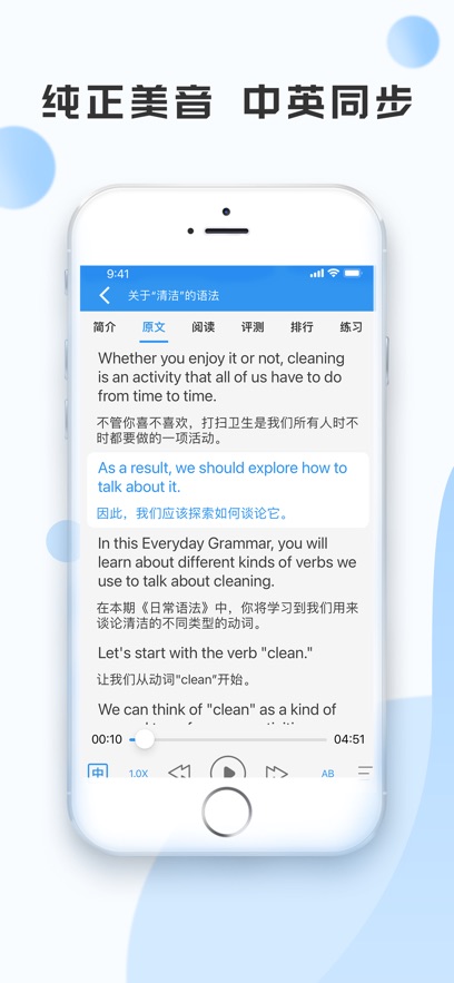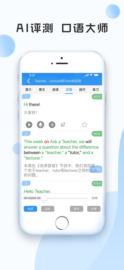 2.内置智能跟读评分,读完立即指出重读、连读错误